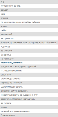 (480)Бот это автоматическая программа. Если пользователь нарушает правила, можно ему написать, дорогой друг - ты нарушаешь правила, вот это, вот это и вот это. Исправься пожалуйста. Это должно работать для всех. А когда человеку пишут - тупой бот я тебя уничтожу! Не похоже, что это обращение к человеку а не к программе.