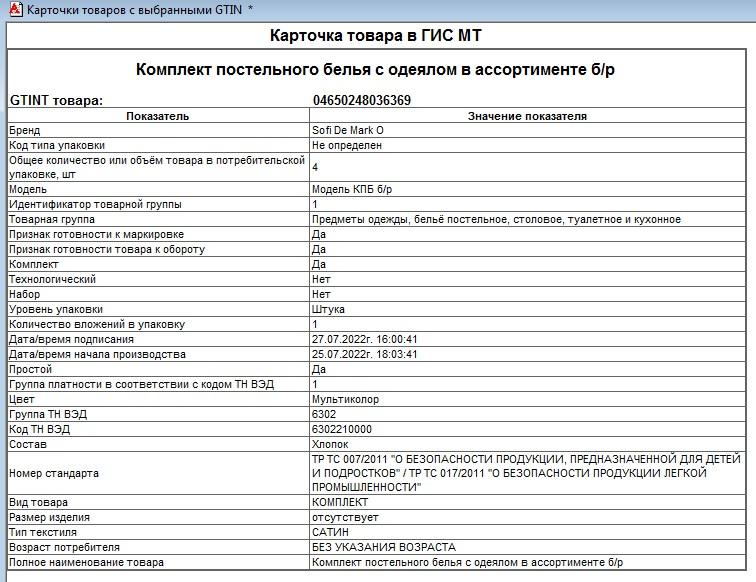 Да, все верно... Было в начале учета марок по этой ТГ, "типа акция", промаркируйте остатки в том числе и в рознице, до какой-то даты Х... Типа, как-то это должно было повлиять на "безопастность" продаваемого товара... (Как???) :-( Это был просто способ дособрать неполученные деньги за марки, на товары, которые уже в продаже. Ладно у производителей, тут, как-то понятно, ну... у перекупов, еще как-то с натяжкой можно попробовать обосновать... Но, маркировать остатки товара в рознице - тут только "жадность", больше нет обоснований - марок заказывали на маркировку таких остатков, приобретенных "непонятно где" тысячами, и это только у меня... А в масштабах страны, цифры даже представить трудно. Конечно, разве можно было упустить "такой лакомый кусок" :-( Но, "маркировка остатков по упрощенной схеме" шла с использованием GTIN-ов специальных, выдаваемых для этих целей самим ЦРПТ - они все начинались на "029***********", типа внутренние от самого ЦРПТ... И даже для этого магазинчика, я в свое время заказал и напечатал несколько тысяч марок, на максимум десяток таких GTIN... Но, там явно было не десяток разных карточек товаров на эти "псевдо-марки"... И ведь работало, сабжевой проблемы почему-то не возникало... Возможно, Розница понимала, что эти марки начинались на "029", и соответственно это маркировка по упрощенной схеме, и ни куда их привязывать не нужно... Поэтому и проблемы не возникало. Тут-же, марки явно не по упрощенной схеме должны были выдаваться, а на конкретный товар, так, как GTIN начинается на "046"... По GTIN из марки, в ЦРПТ есть конкретная карточка товара: ![]() Естественно, она будет одной и той-же для всех этих 4-рех товаров(ну, это 4 у моего клиента, возможно их значительно больше)... Ничего общего эта карточка не имеет с наименованиями конкретных товаров на этикетках... Да, там в названии товара есть приписка - "в ассортименте"... Но, с моей точки зрения, товар в ассортименте - это практически один и тот- же товар, с минимальными различиями(ну, там цвет, запах, вкус :-) ) не влияющими на розничную цену (она ОДНА для всех товаров этого ассортимента), и так-же продающийся на кассе как один товар в ассортименте... Но, тут, товары разные, с РАЗНЫМИ розничными ценами, и соответственно карточка в 1С своя на каждый... Неужели только у меня такой вопрос возник? Должно же быть какое-то решение в типовой конфе? PS Вообще, ИМХО - привязка и особенно контроль соответствия марки конкретному товару в своей базе - лишний гиморой... Как минимум, должен быть какой-то способ отключать этот контроль, когда он не требуется. Типа "галочка" в карточке, "не контролировать соответствие марки этому товару"... С точки зрения ЧЗ - тут ни каких проблем не будет - им по барабану наша база, и все, что в ней творится... Они получили в чеке марку, и по ней списали марку с карточкой, которая у них к ней привязана... Цены их тоже не интересуют (ну, за исключением табачки - там МРЦ)... Как кто решает такие проблемы? Может все-таки есть какое-то отключение контроля принадлежности марки конкретному товару, и я просто не нашел его? Еще раз - конфа "базовая", и "допиши сам" тут не прокатит. |