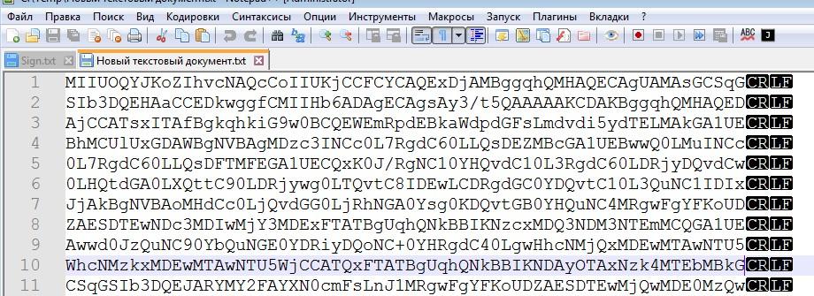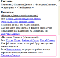 ВходящиеДвоичныеДанные = ПолучитьДвоичныеДанныеИзСтроки(СтрокаДляПодписи); ПодпБин = МенеджерКриптографии.Подписать(ВходящиеДвоичныеДанные, Неопределено, СертификатЭЦП, ТипПодп); // ПодпБин = МенеджерКриптографии.Подписать(ИмяВремФайла, Неопределено, СертификатЭЦП, ТипПодп); Но, на результат это не влияет. | |||