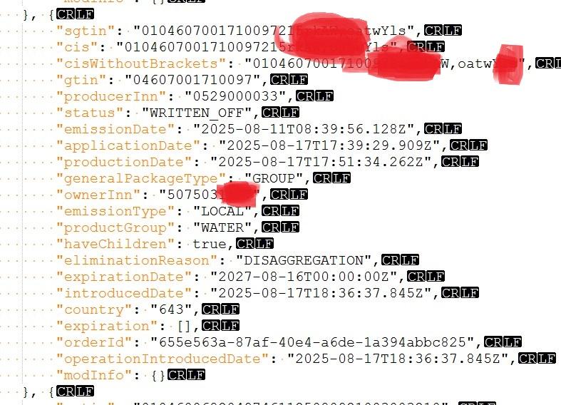 Но, я все-таки набросок запроса сделал... И даже что-то работает :-) Там требуется SGTIN начальный... х.з. что там указывать... Взял первую попавшуюся марку из ЛК, вырезал из нее GTIN, а вместо серийного номера добавил строку из 13 нулей :-))) Дата с - поставил 01.01.2025, 00:00:01. Возвращает JSON файл, совсем не большой 74 кб всего... В нем куча марок, сколько - пока не понял, разбор JSON пока не делал, сил нет, спать хочу... Завтра. Но, последняя строка: ""isLastPage": false"... Получается, это не последняя страница. Скорее всего, там 1000 марок. Но, что-то объем маленький для 1000 марок. Учитывая, что там много чего, не только КИЗ марки: ![]() Как-то сомнительно, что 1000 таких блоков текста всего 74 кб будет весить. Ладно, завтра разберу джейсон, будет видно... |